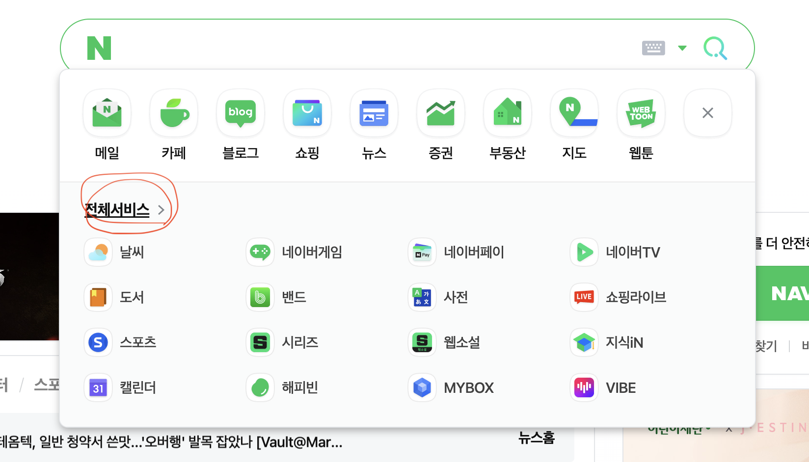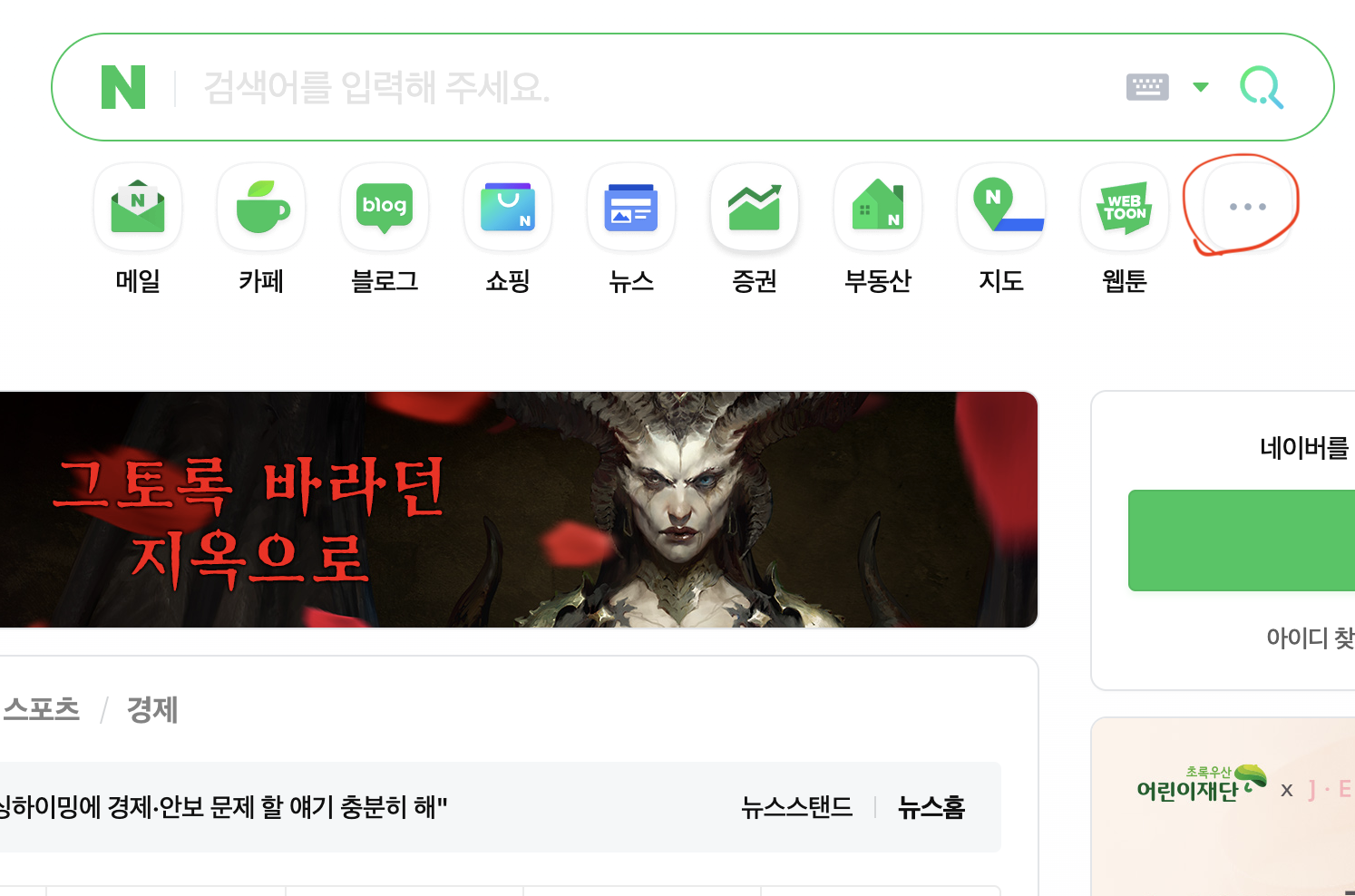 네이버 홈페이지에 가서, 오른쪽 상단에, "..." 을 누르시면, 메뉴가 주욱 나옵니다.