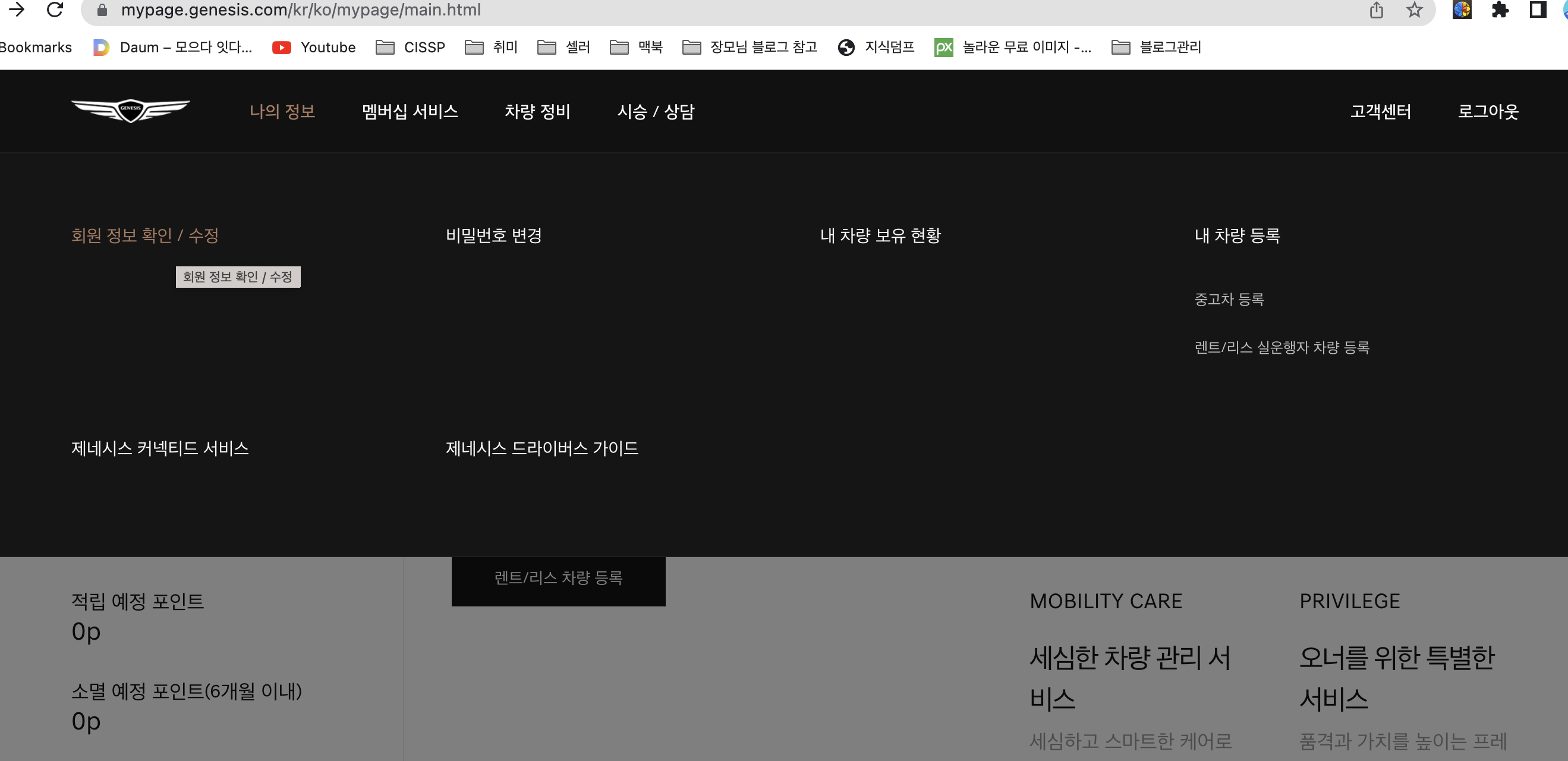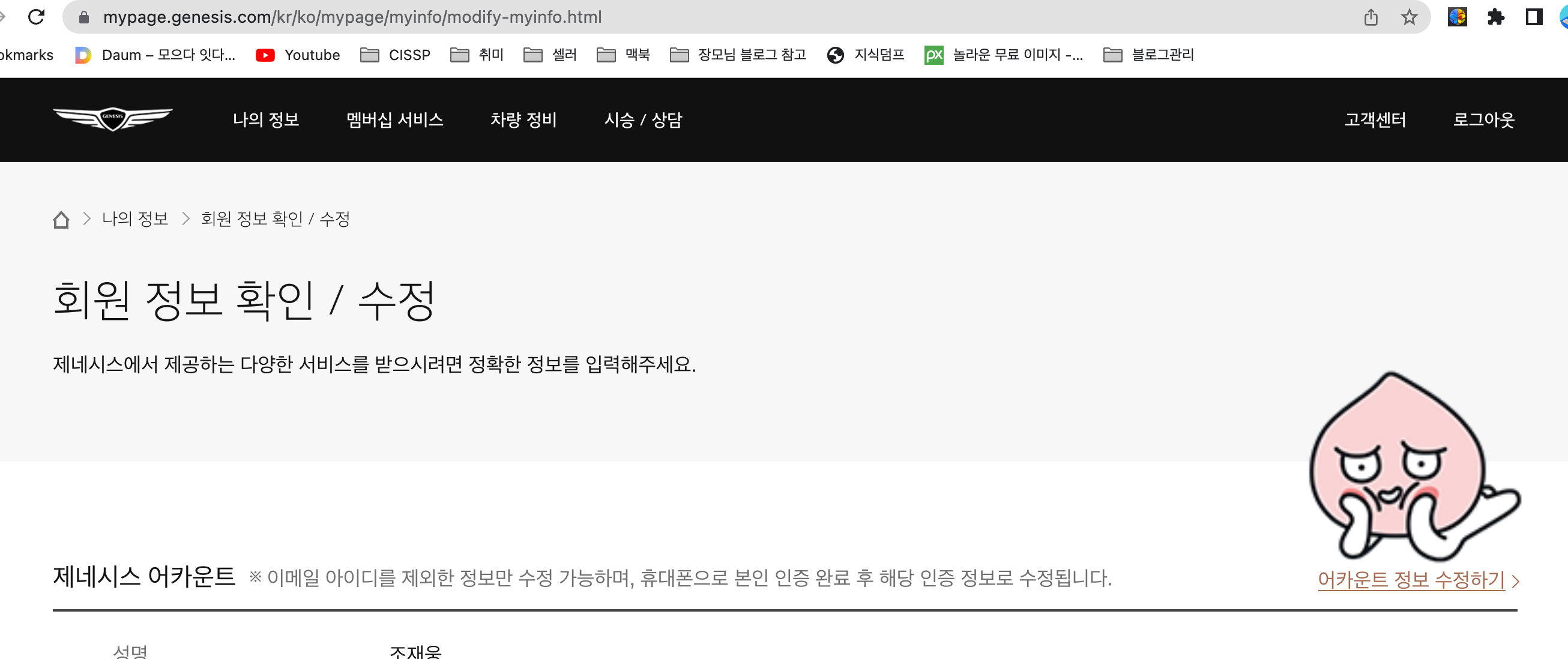 혹시나하고 제네시스 홈페이지에 가서 로그인하고, 회원 정보 수정에 들어가보니, 아이폰 번호가 떡하니 등록이 되어 있다.