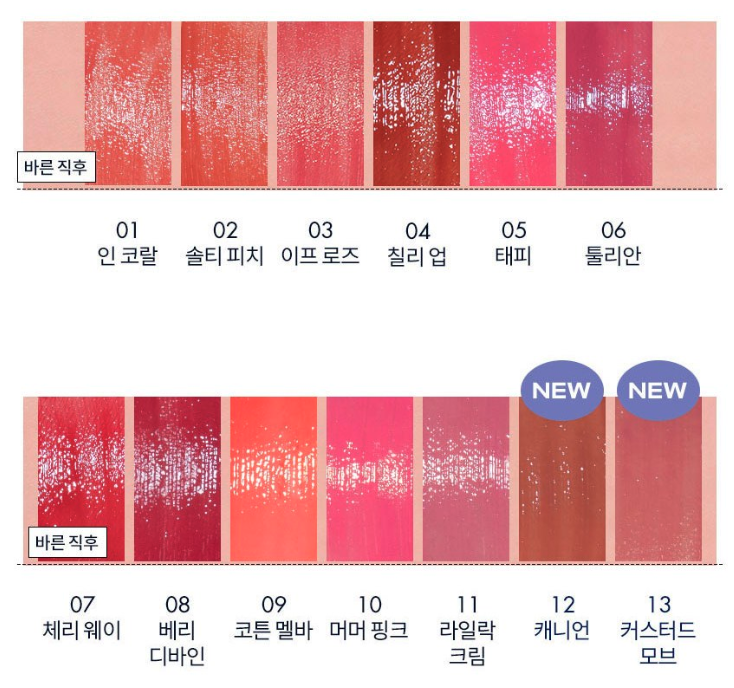 - 자연스러운 발색과 촉촉한 텍스처의 워터 틴트 제품