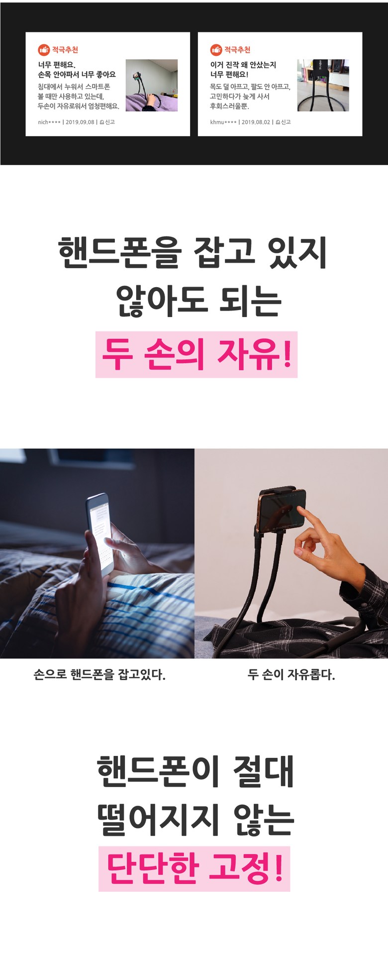 무엇보다 마음을 끄는 것은 누워서 누워서 누워서!!!!! 얼굴에 떨어뜨리지 않고 휴대폰을 조작할 수 있다는 것!