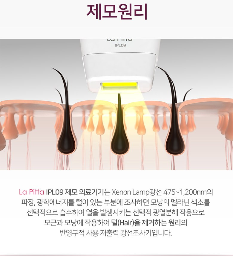 어우 어렵지. 그냥 털을 속부터 태운다고 생각하면 될거같다. 광학제모의 특성상 털을 영구제모하려면 2~3회 사용해서 씨를 말려야 한다!
