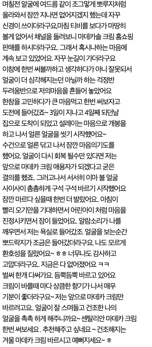 전체적으로 안정적이고 괜찮은 제품같아 보인다. 겨울철 피부관리에 힘써야 하는 사람들은 한번쯤 사용해봐도 좋을 거 같다