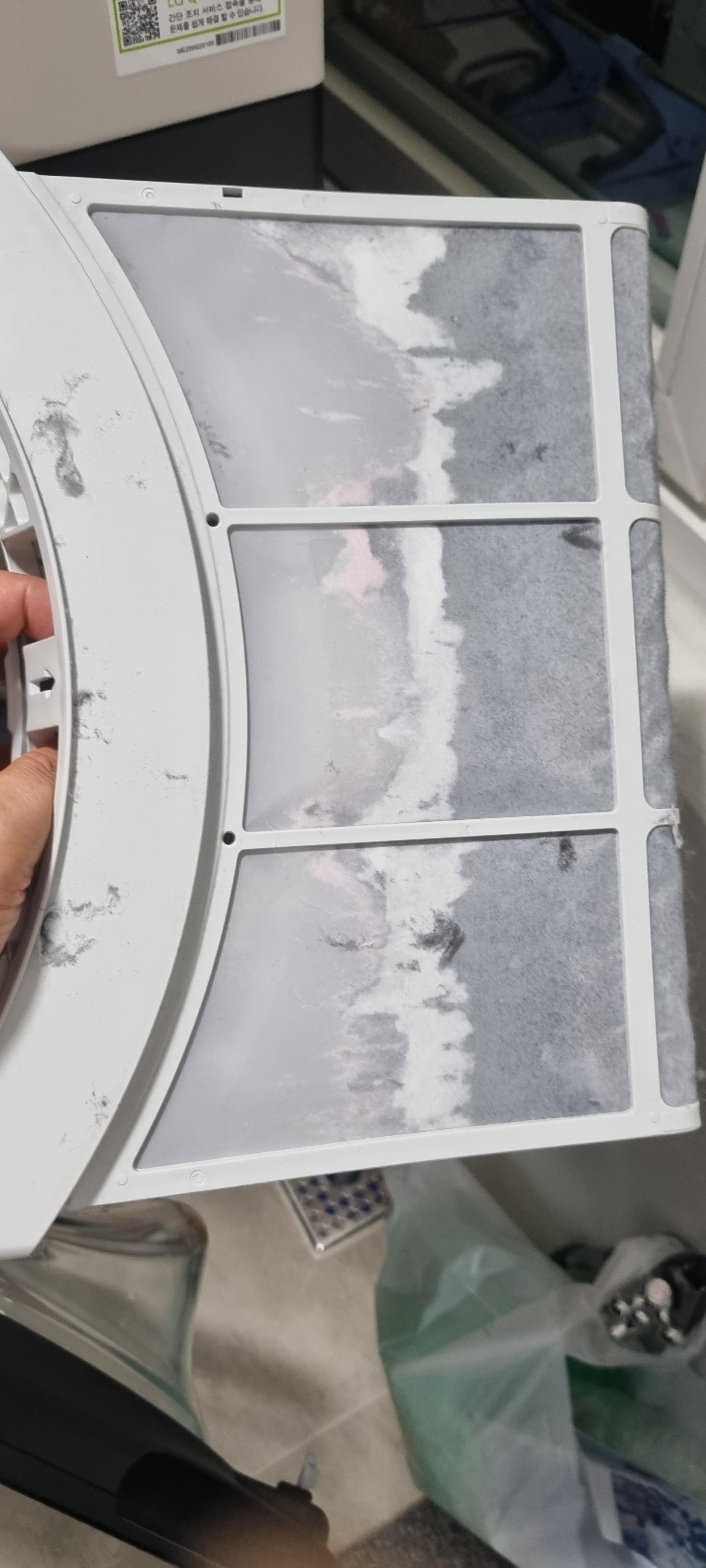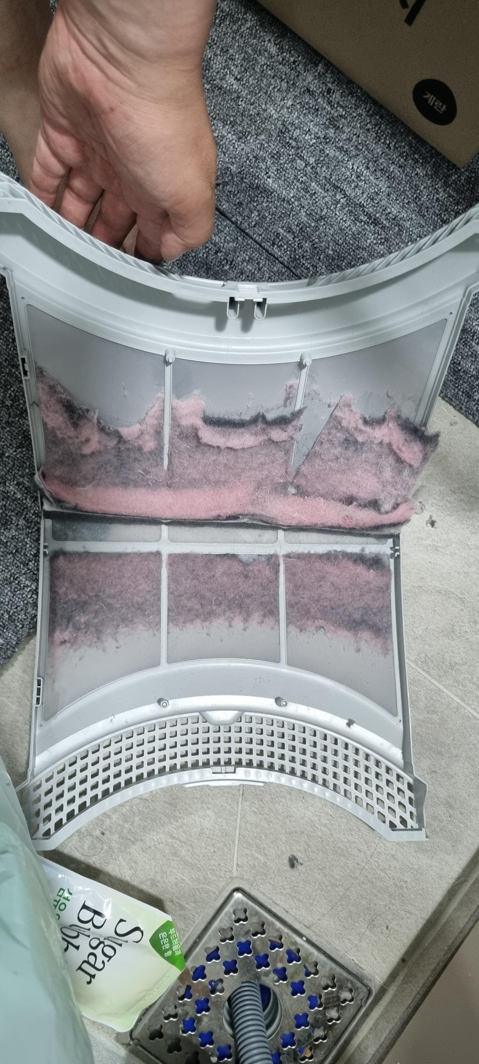 지금 이 상태가 우리집에서 두번 정도 돌린 상태의 먼지 통. 이것이 두번 돌린 건조기의 먼지.