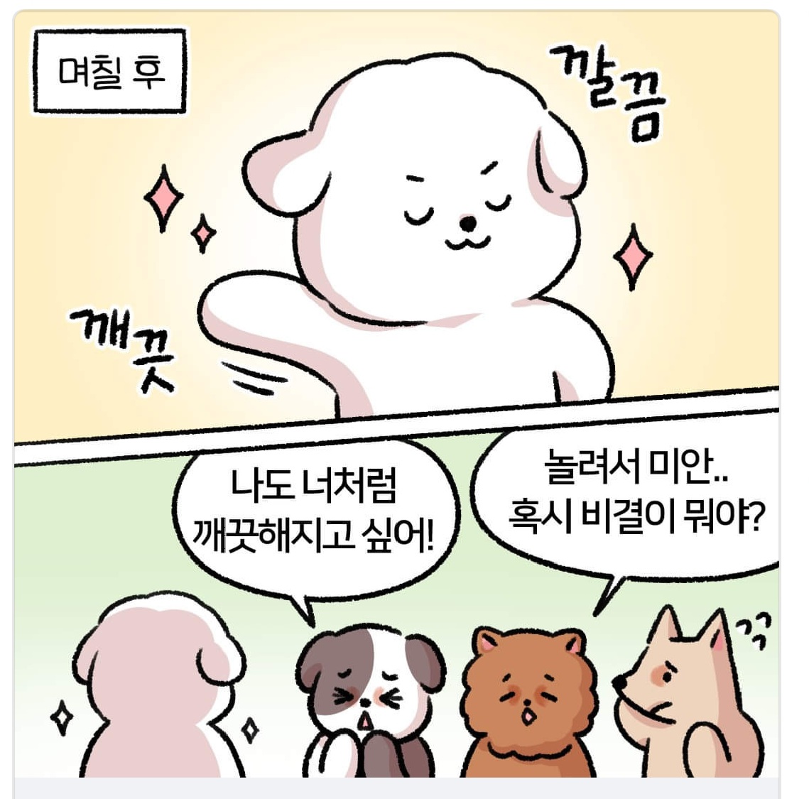확깨끗해지는 건 아닌데, 저희 강아지는 눈물이 많아서 털에 덕지덕지 눈물이 굳어있었어요.