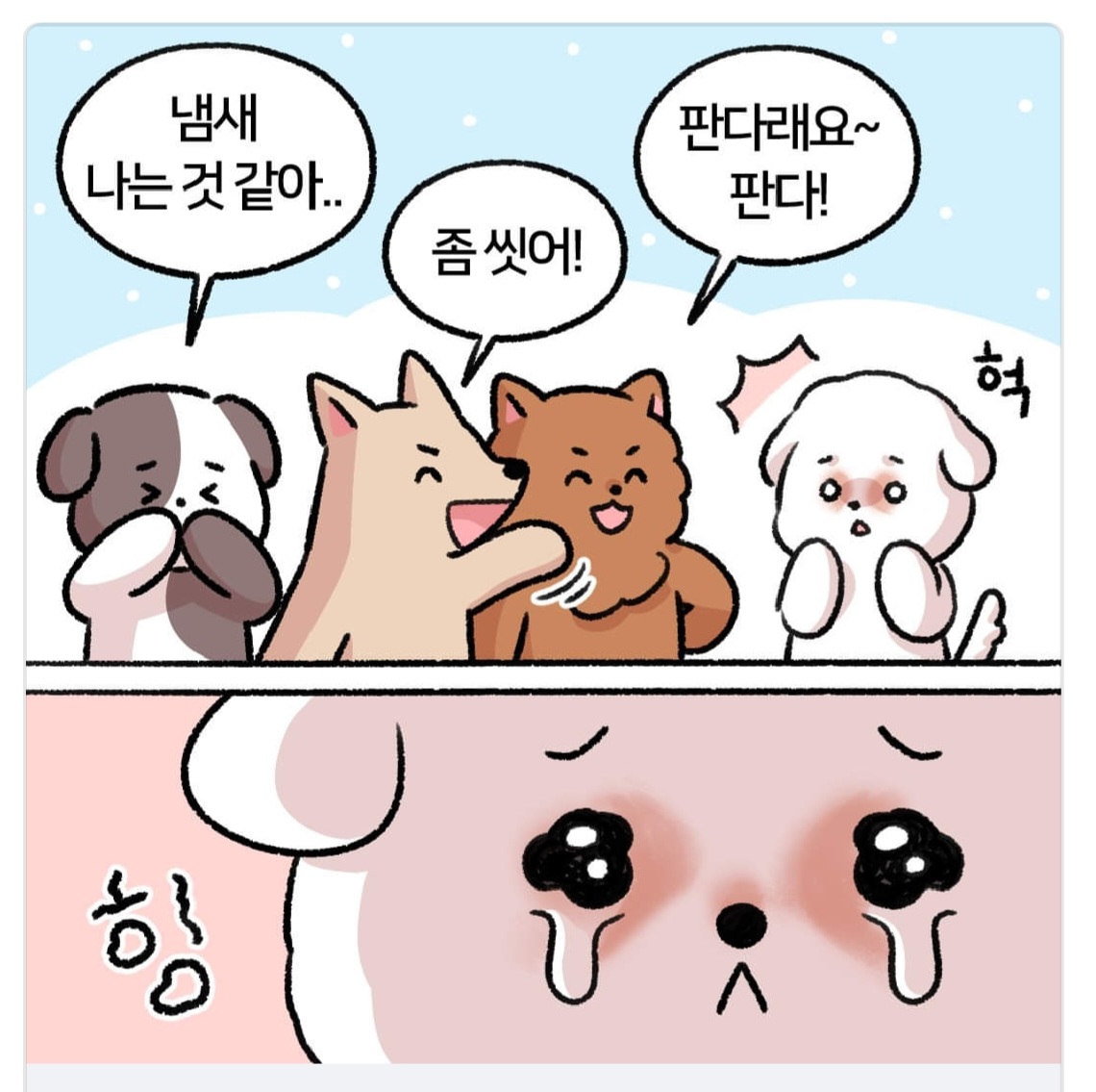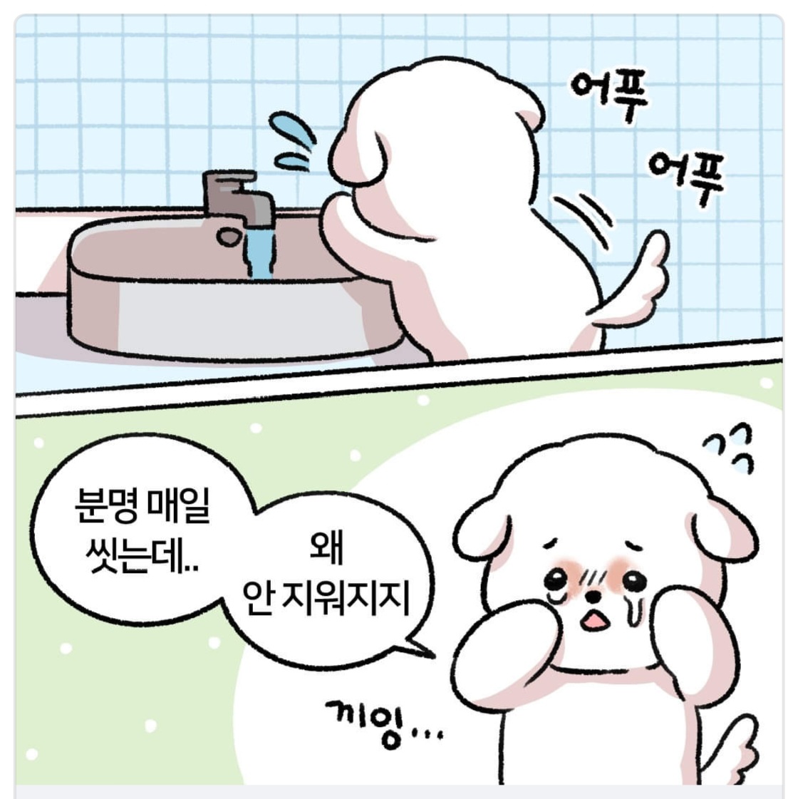 눈물 닦아주고 나서 하루만 지나도 저렇게 됐거든요. 눈물자국 수준이 아니라 눈물떡이었죠.